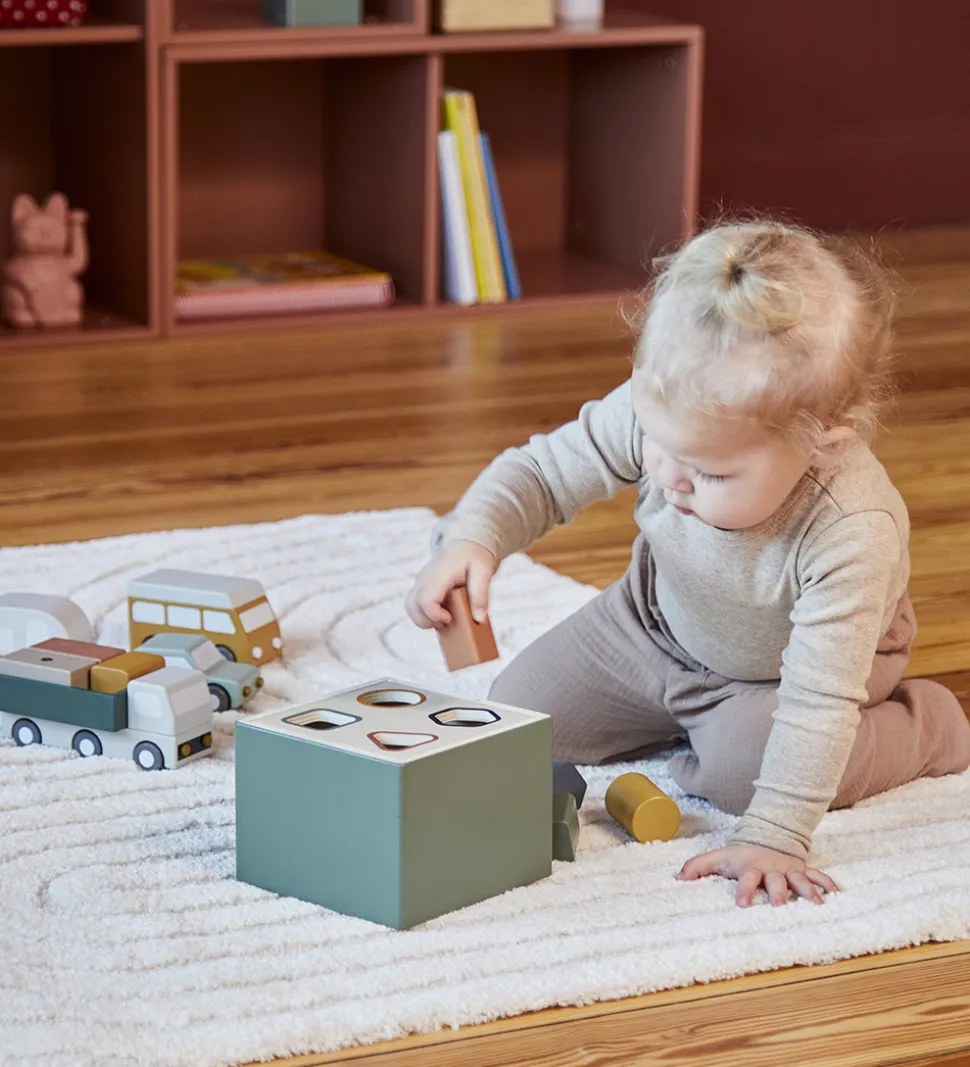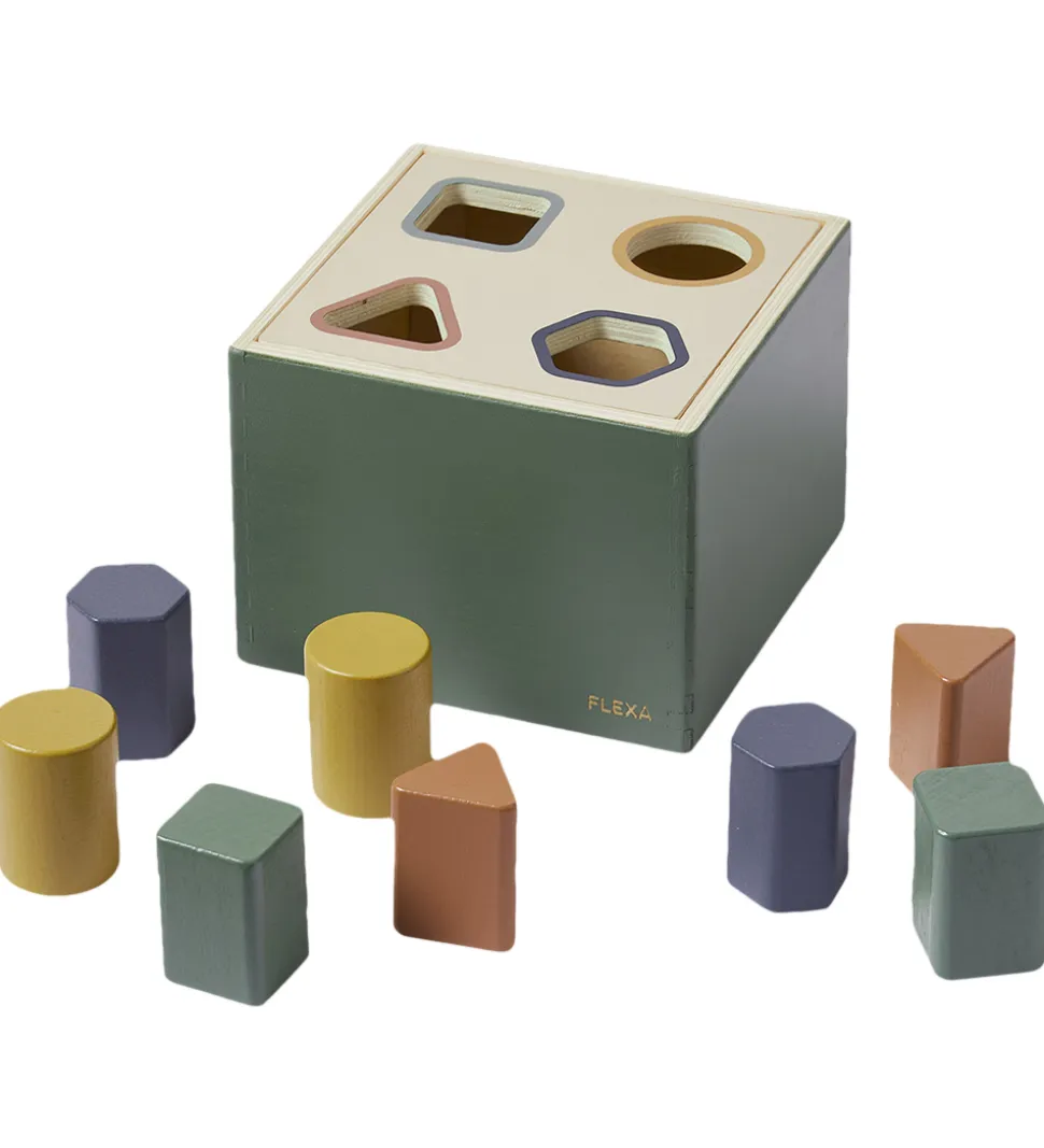 Flexa trælegetøjet er perfekt til barnet, der elsker at lege med klodser og udforske former og indeholder 10 dele:
