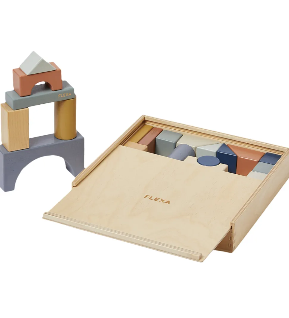Flexa træklodserne er perfekt til barnet, der elsker at lege bygge og indeholder 36 dele i mange forskellige former og størrelser til at bygge alle mulige konstruktioner. Træklodserne kommer i opbevaringskasse med låg.