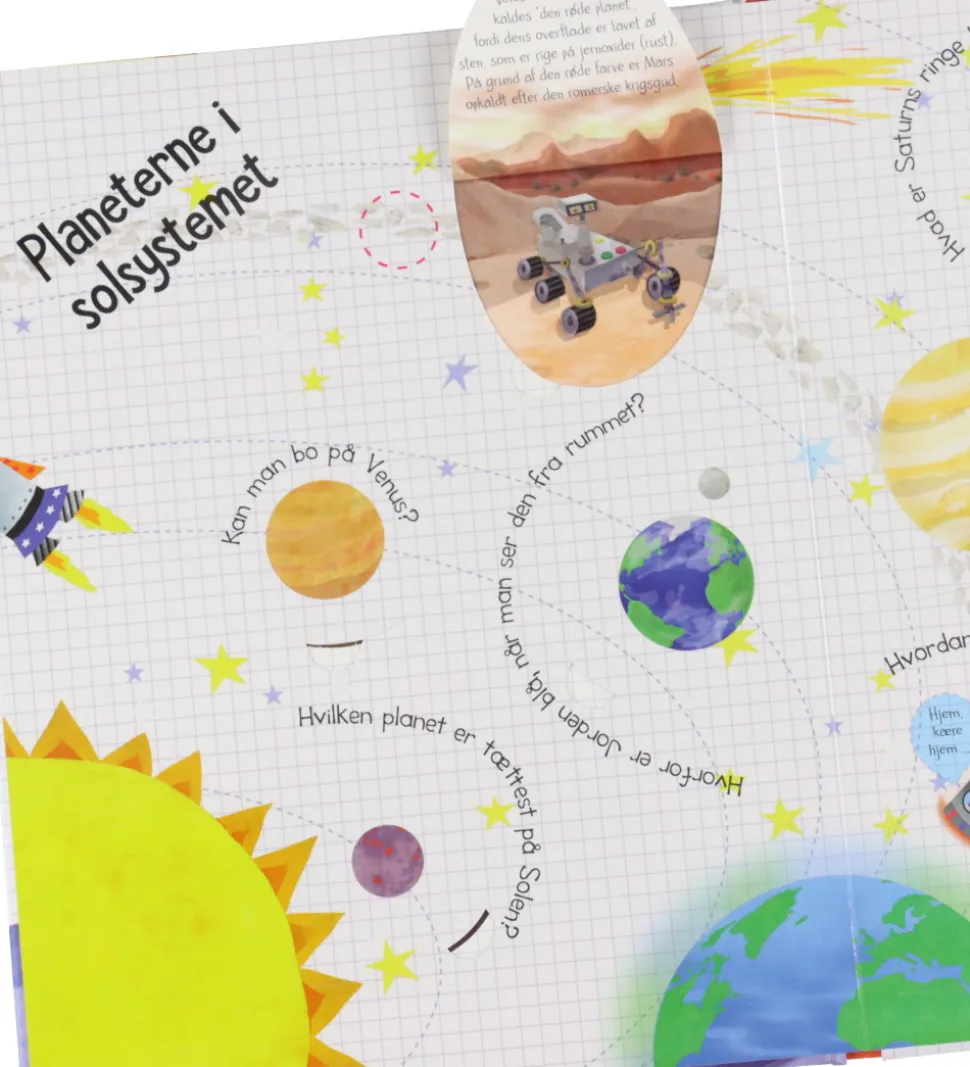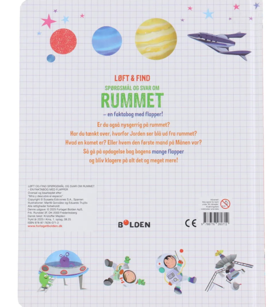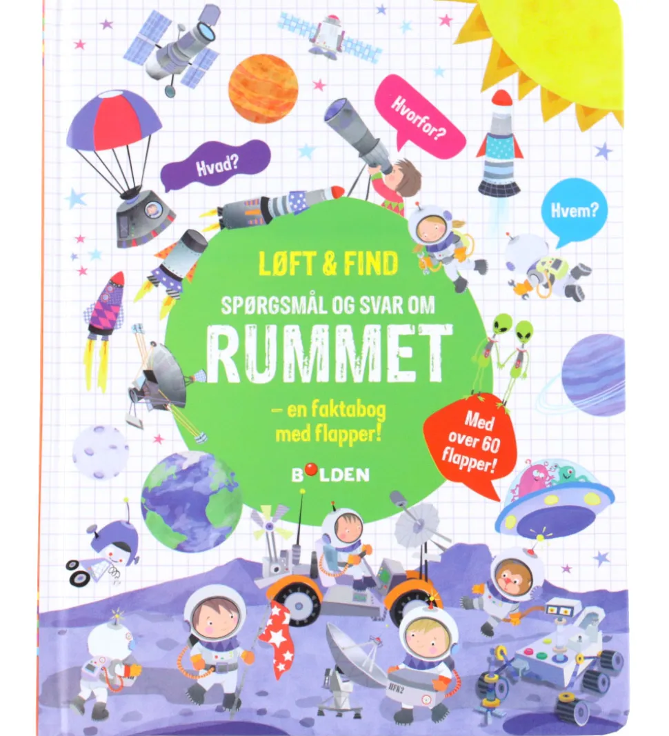 Forlaget Bolden bogen er en pegebog og indeholder lærerige illustrationer med flapper og informationer, som lærer børn om rummet.