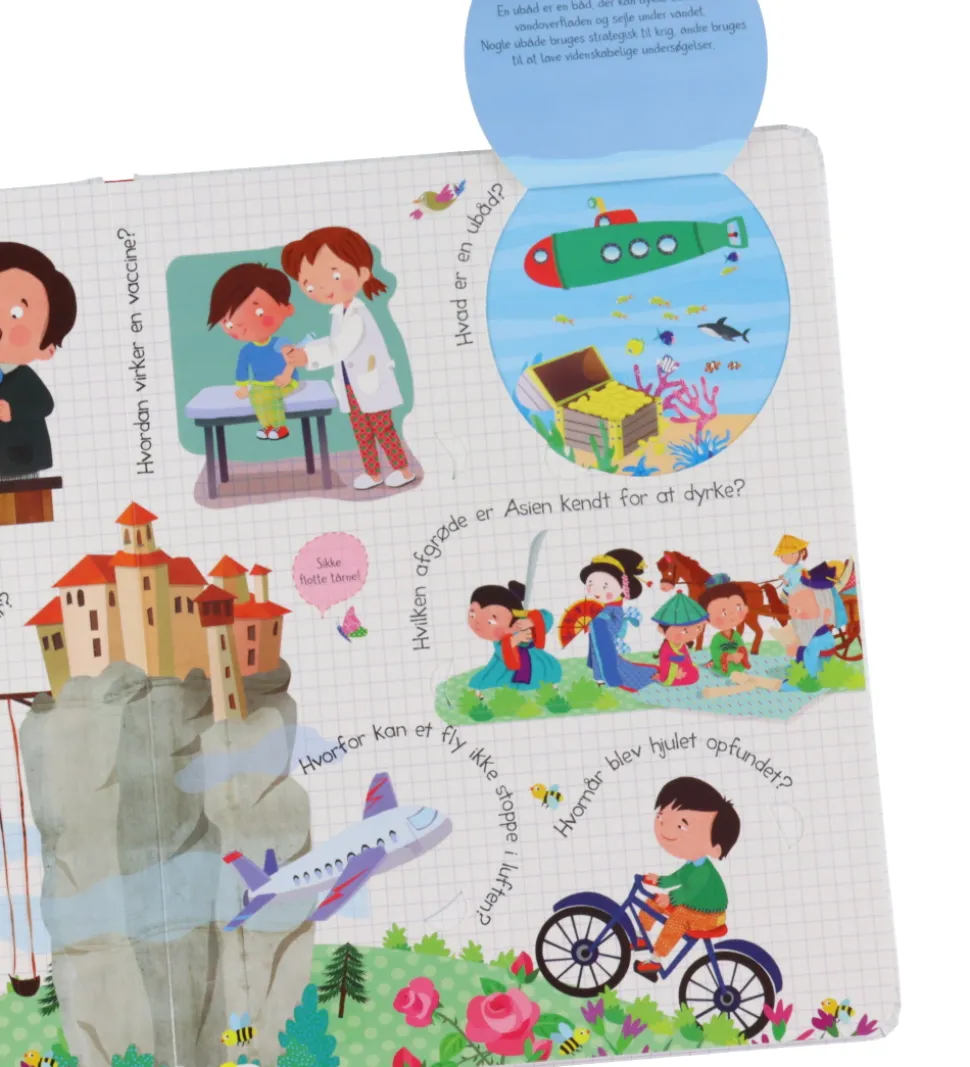 Forlaget Bolden bogen er en pegebog og indeholder lærerige illustrationer med flapper og informationer, som lærer børn om verden.