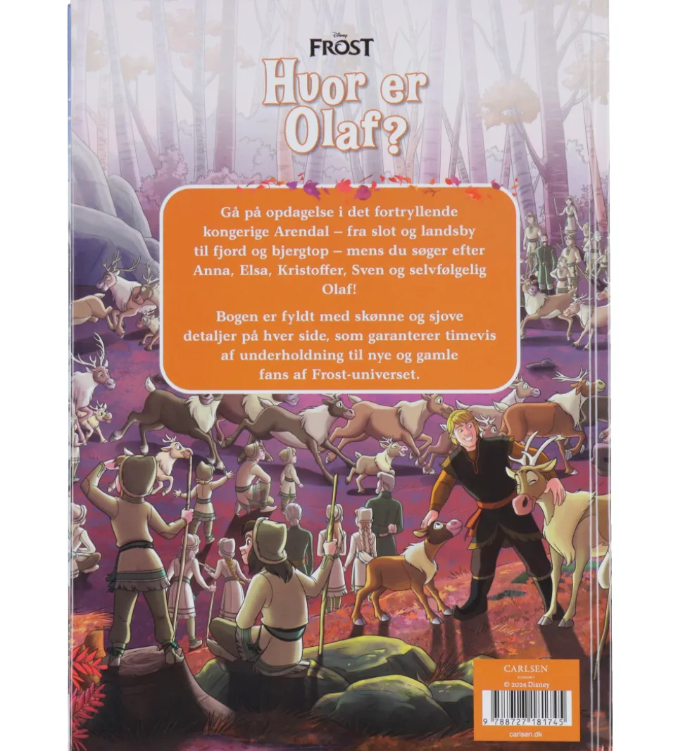 Forlaget Carlsen bogen er sjov for alle Frost fans da man kan gå på opdagelse i det fortryllende kongerige Arendal, for at finde Anna, Elsa, Kristoffer, Sven og Olaf!