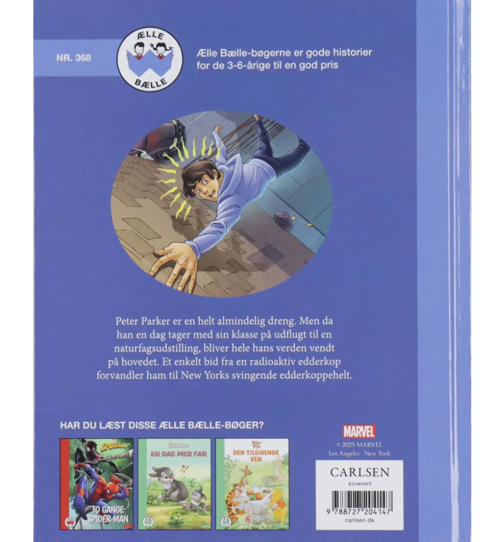 Sjov Forlaget Carlsen bog med titlen “Hvordan Peter Parker Blev Til Spider-Man”.