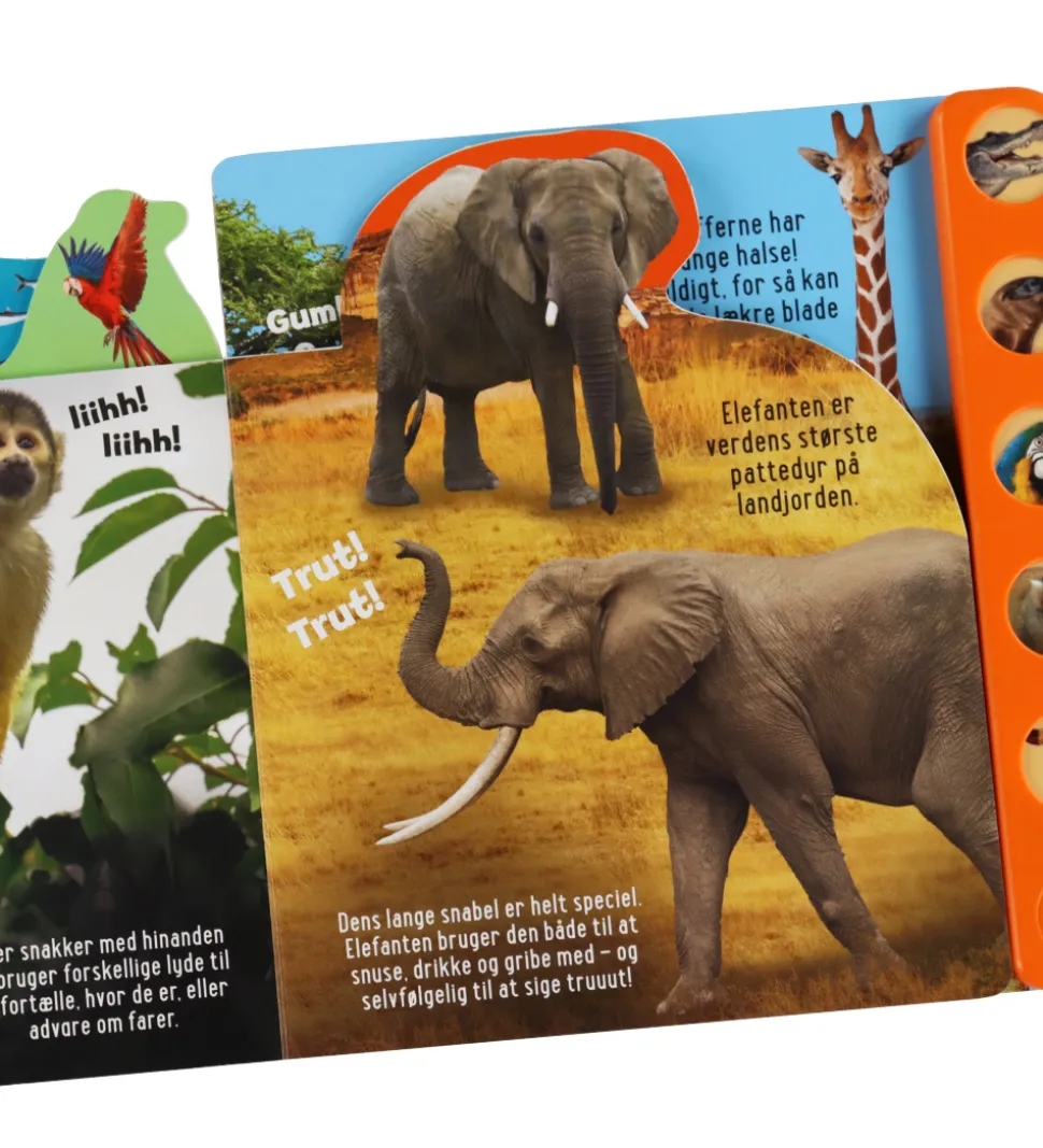 Forlaget Tukan bogen har 12 sider med flottte illustrationer og knapper med lydeffekter, der gør oplevelsen endnu mere levende for børnene.