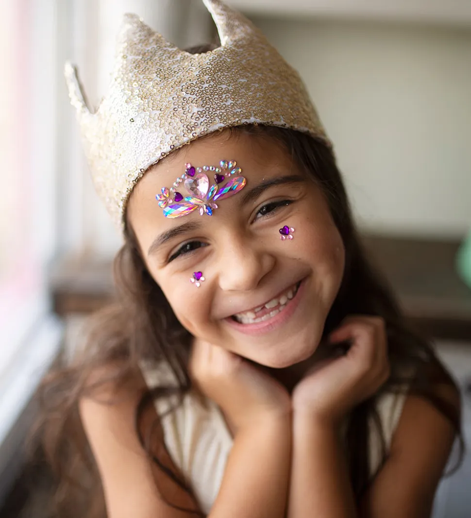Great Pretenders ansigtsjuvelerne er smarte som udklædningstilbehør og dekoration og klistres på huden i fantasifulde formationer.