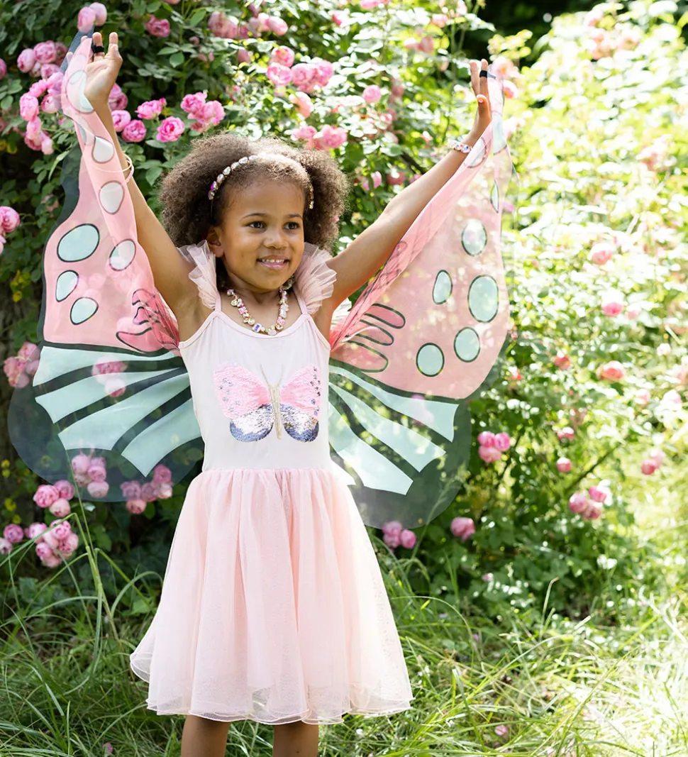 Fin Great Pretenders udklædning i en lys rosa farve med glitrende sommerfugleprint på fronten, og flotte tyl detaljer.