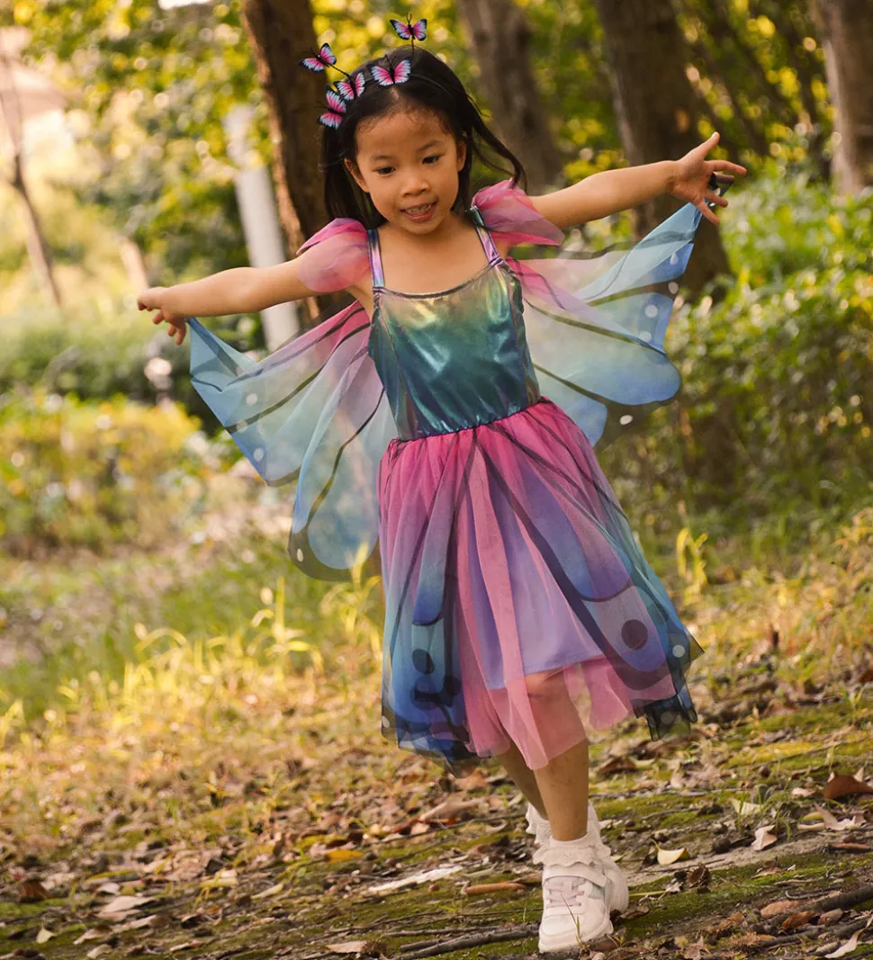 Great Pretenders udklædningen ligner en sommerfugl og lægger op til utallige timers sjov og kreativitet. Udklædningen kan bruges til fastelavn eller halloween, men kan også bruges som en god tilføjelse til hverdagens leg.