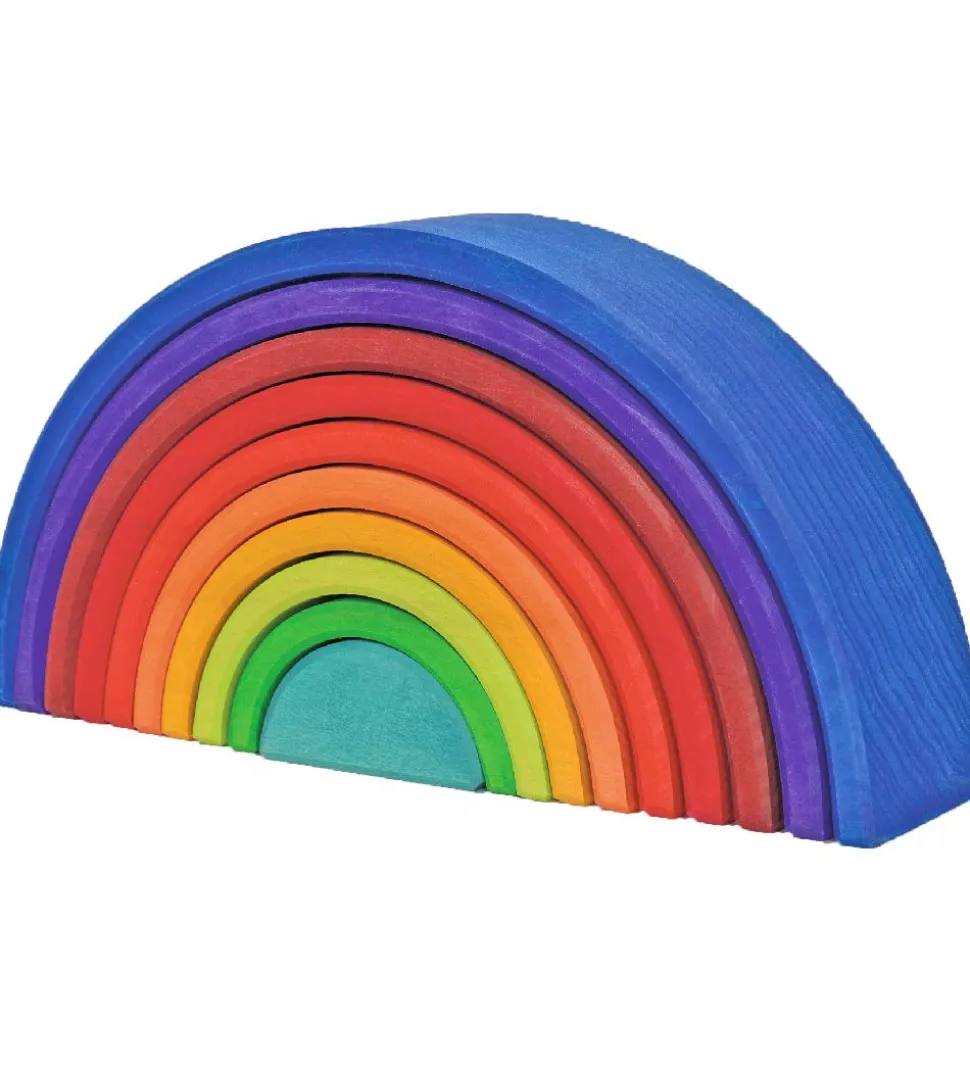 Grimms regnbuen er lavet i træ og er perfekt til de små, som stadig er ved at øve motorikken og den logiske sans. Lagene i regnbuen passer alle sammen, så de små skal finde den rigtige rækkefølge, lidt ligesom et stabletårn. Når regnbuen ikke bliver leget med, er det oveni en smart dekoration på børneværelset.