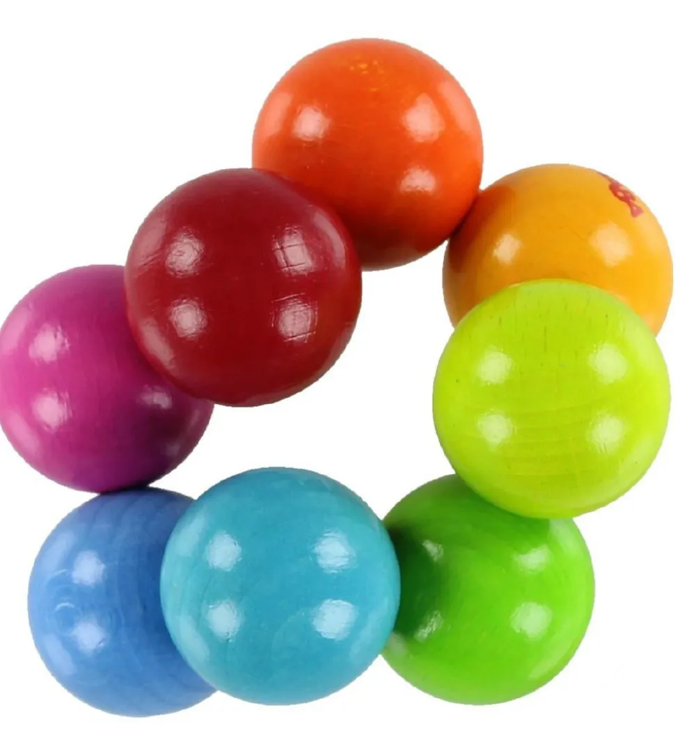 Farverigt Haba gribelegetøj med otte store kugler, som holdes sammen af en kraftig elastiksnor, så de kan vride sig omkring hinanden.