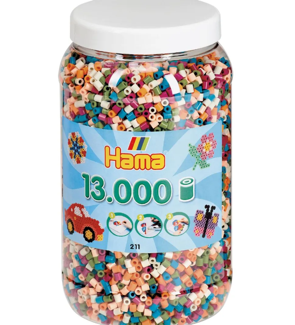 Hama perlerne kommer i en bøtte med ca. 13.000 Midi perler.