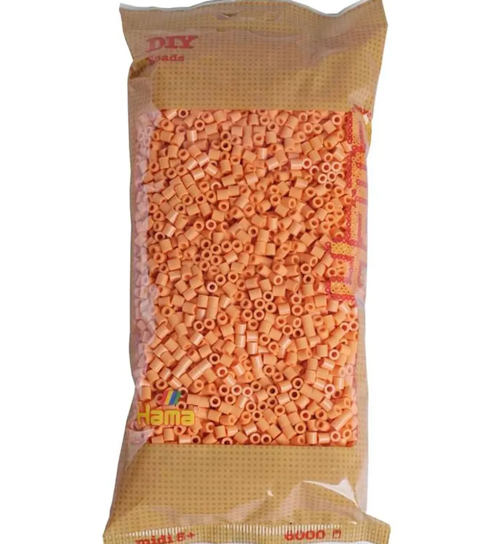 Sjove Hama perler i ensfarvet lys abrikos farvet.