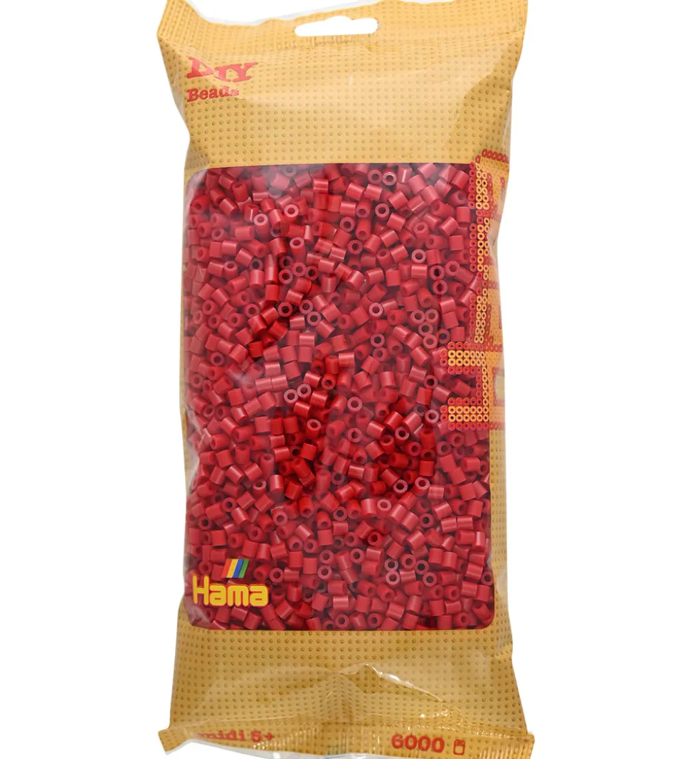 Fine Hama perler i ensfarvet kirsebærrød.