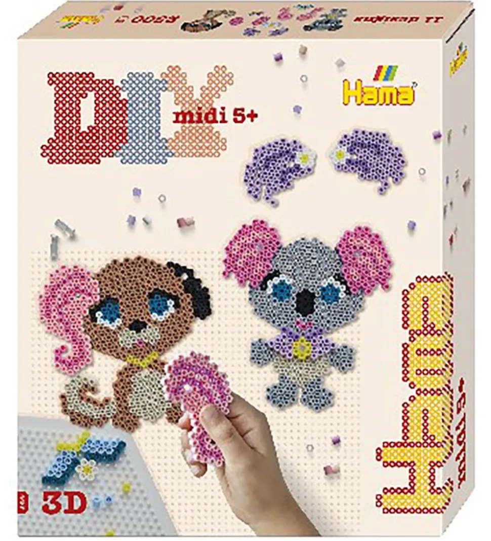 Sjovt Hama perlesæt med et dyresalons tema.