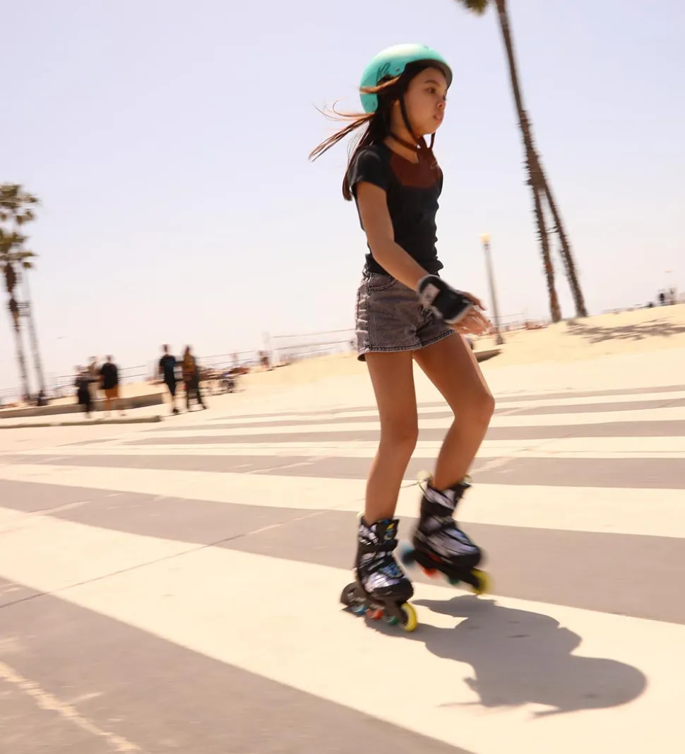 Rulleskøjterne lukkes med både elastiske bånd, en velcrorem og en plastrem, så inlinerne er lette at få af og på. Bagpå er der en stor bremseklods på den højre rulleskøjte, så rulleskøjterne er lette at styre.