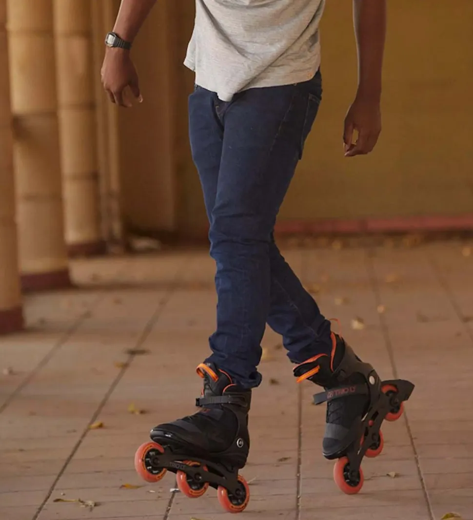 Flotte K2 rulleskøjter i sort med orange detaljer.