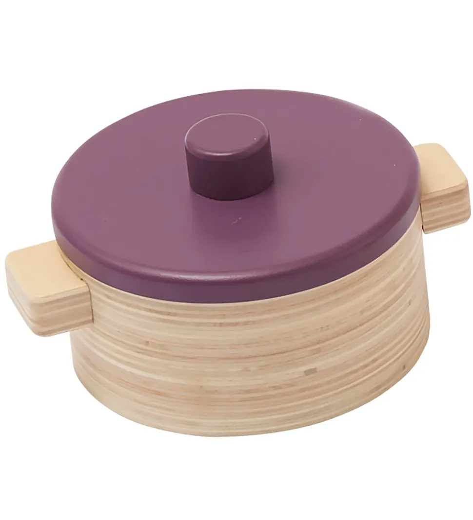 Skønt Kids Concept køkkensæt i træfarver, lilla og brun i et skadinavisk design.