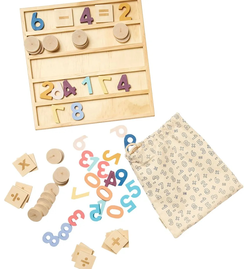 Kids Concept tællerbræt er perfekt til de børn som skal lære simple og mere udfordrende matematikstykker, samtidig med at det gøres på en sjov måde. Der medfølger tallene fra 1-9 forskellige farver samt små brikker med plus, minus, gange og divider tegn, så der kan dannes regnestykker. Der medfølger også 25 runde brikker, som skal kunne gøre det nemmere at forstå værdierne af tallen og regnestykkerne.