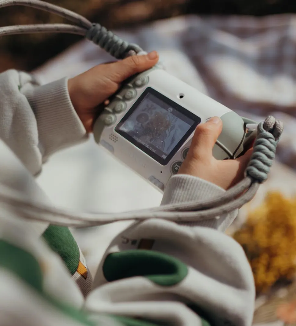 Kidywolf kameraet er forstærket med silikone, som sikrer at man har et godt greb og er den ideelle ledsager til unge fotografer. Kameraet er unikt med en indbygget termo printer, så dine børn kan fange uforglemmelige øjeblikke og printe dem uden blæk. Kameraet er udstyret med både et front- og bag kamera samt 21 sjove filtereffekter der gør hvert foto til deres eget. Der er 3 magneter inkluderet så de flotte billeder kan hænges op på køleskabet.