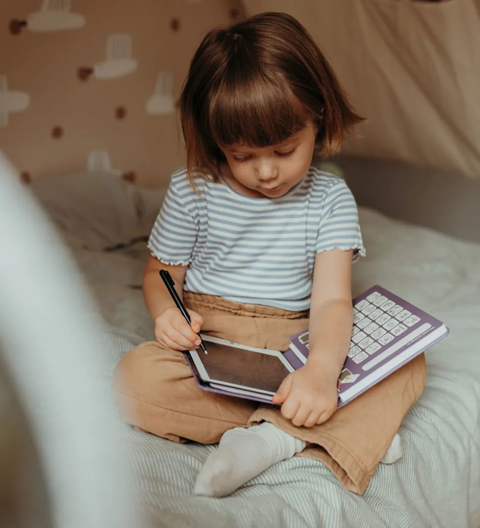 LCD-tegnetavlen er let og bærbar, så den er nem at have med på farten. Tegningerne kan slettes med et tryk på en knap, og når tegnetavlen låses, bliver det tegnede gemt.