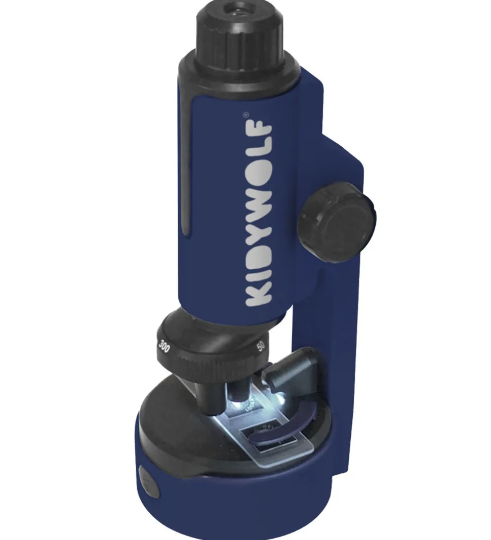 Kidywolf mikroskopet har detaljeret optik og belysning, hvilket gør det perfekt til nysgerrige børn, der ønsker at udforske verden på en ny måde. Mikroskopets linse har 3 indstillinger der er på x50, x150 og x300, så barnet kan se det hele!