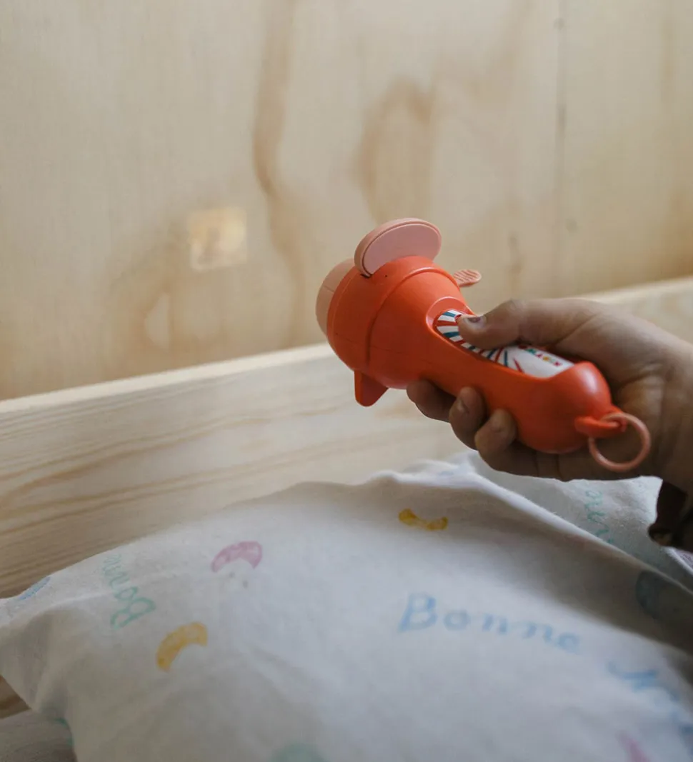 Underholdende Kidywolf lommelygte i rød med tre medfølgende historier.