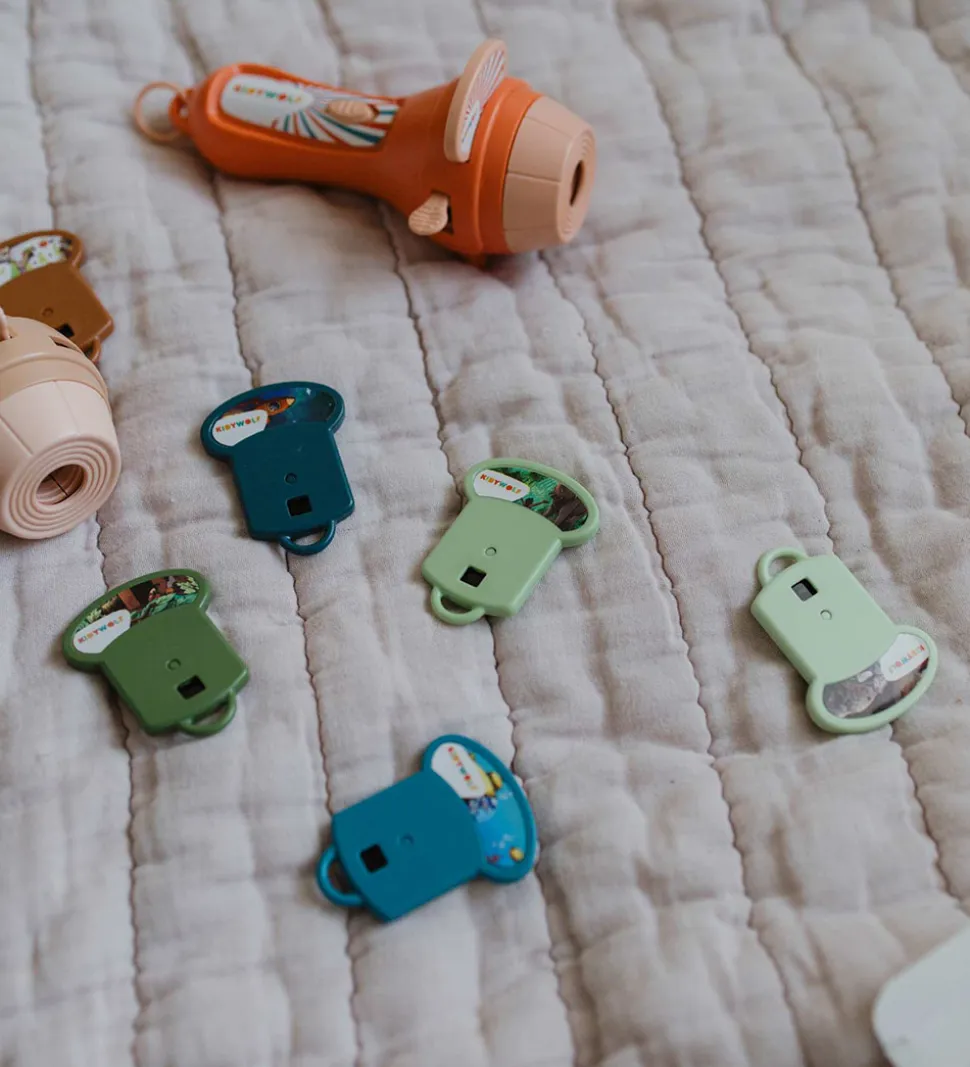 Kidywolf lommelygten fungerer som en projektor, som viser en historie på en hvid overflade. De medfølgende historier består af en plastikdisk, som sættes ind i lommelygten. Hver historie består af otte billeder, og lommelygten er den perfekte måde at afslutte dagen på med en hyggelig fortælling.