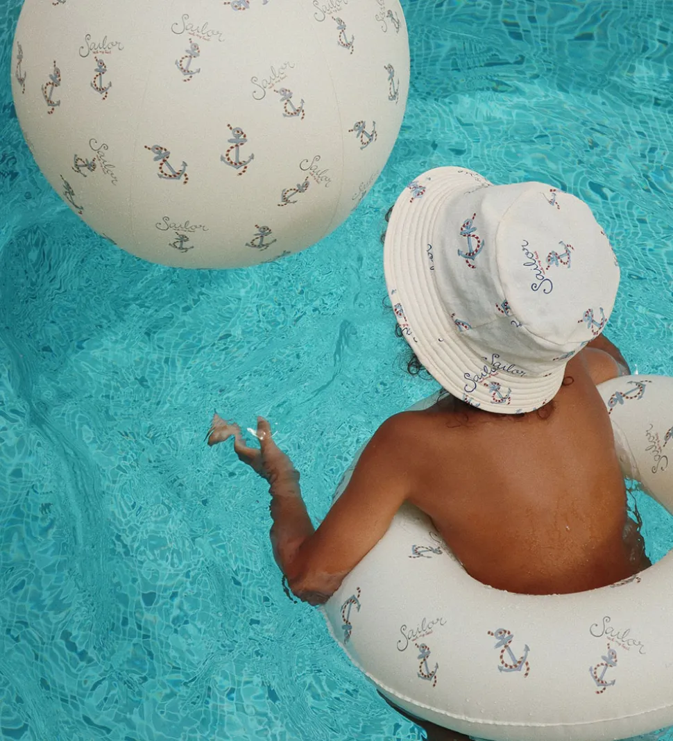 Fin Konges Sløjd badering i råhvid med smalle blå striber og et fint “Sailor” print.