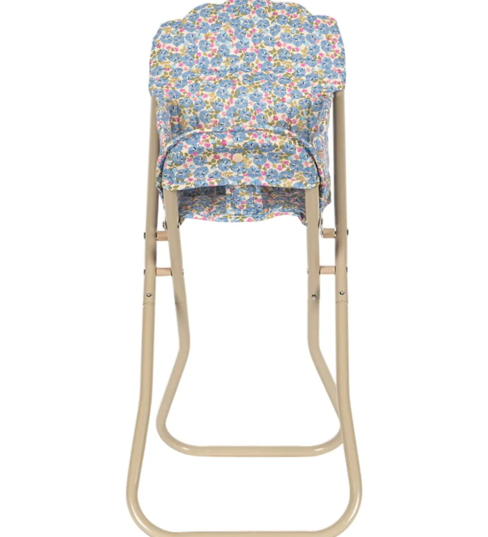 Smart Konges Sløjd dukkehøjstol med et farverigt alloverprint af blomster i blå og rosa nuancer, og en quiltet struktur samt bølgede scallop-kanter.