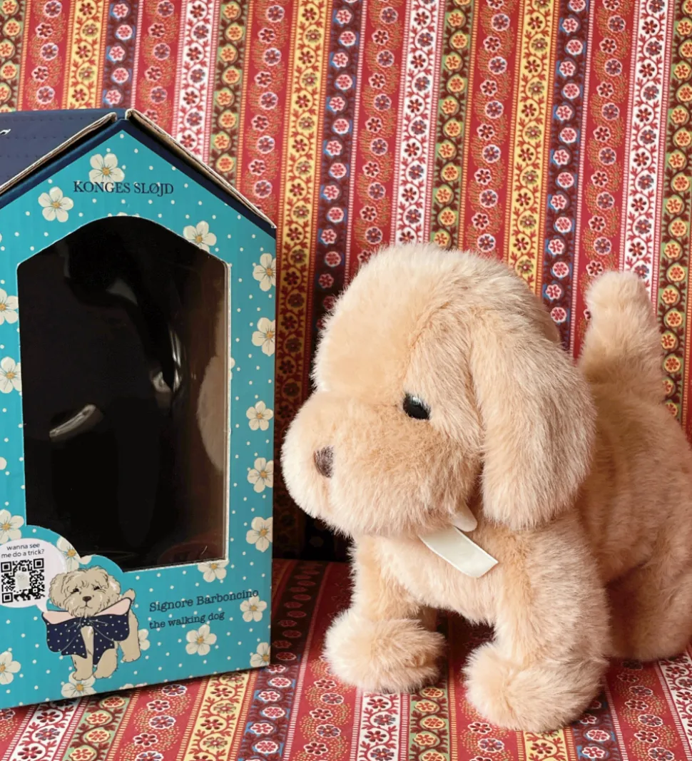 Bamsen er interaktiv og kan selv gå, hvilket gør den mere realistisk. Denne bløde ven er perfekt til hyggestunder og kommer i et dekorativt hundehus. En vidunderlig tilføjelse fra Konges Sløjd til børnenes leg.