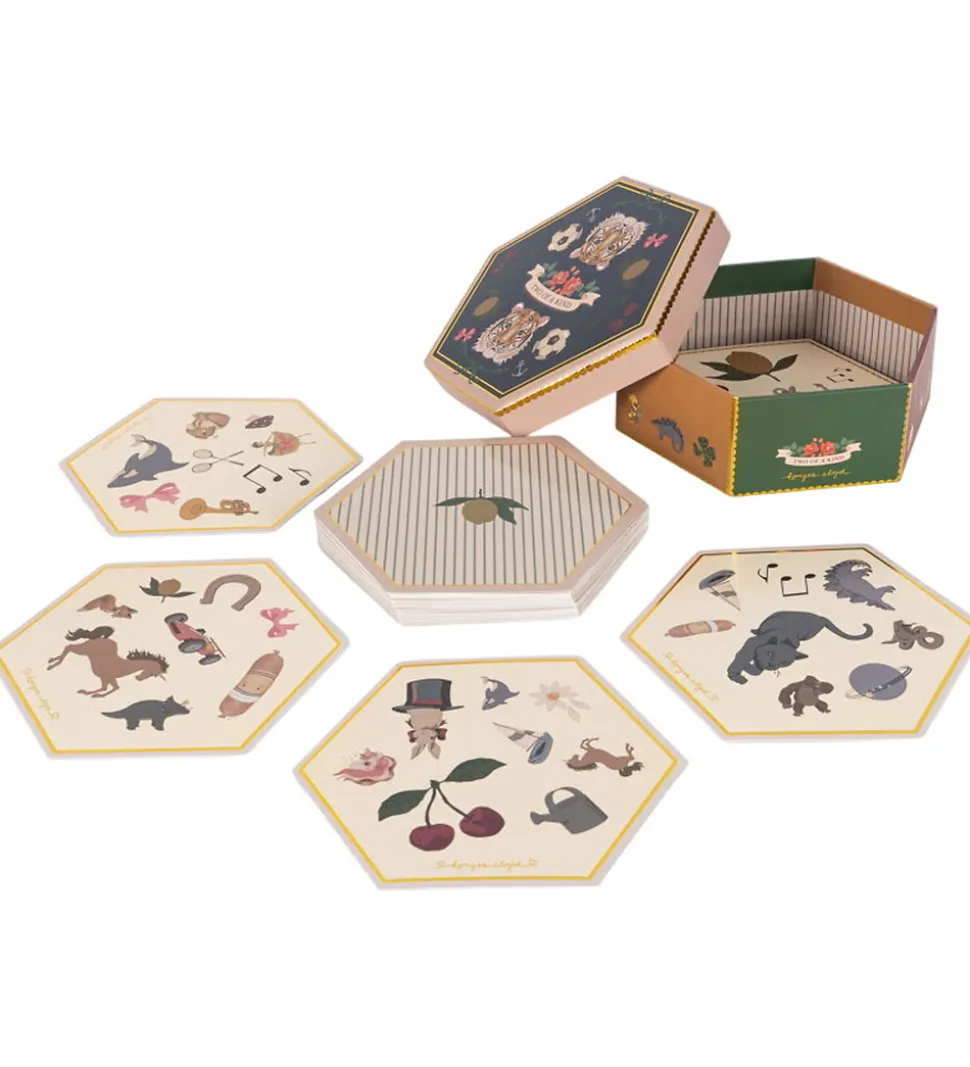 Spillet indeholder sjove kort med forskellige dyr og objekter, der inviterer til timevis af underholdning. Det går ud på at se på kortet og finde det samme billede på spillepladen som den første.
