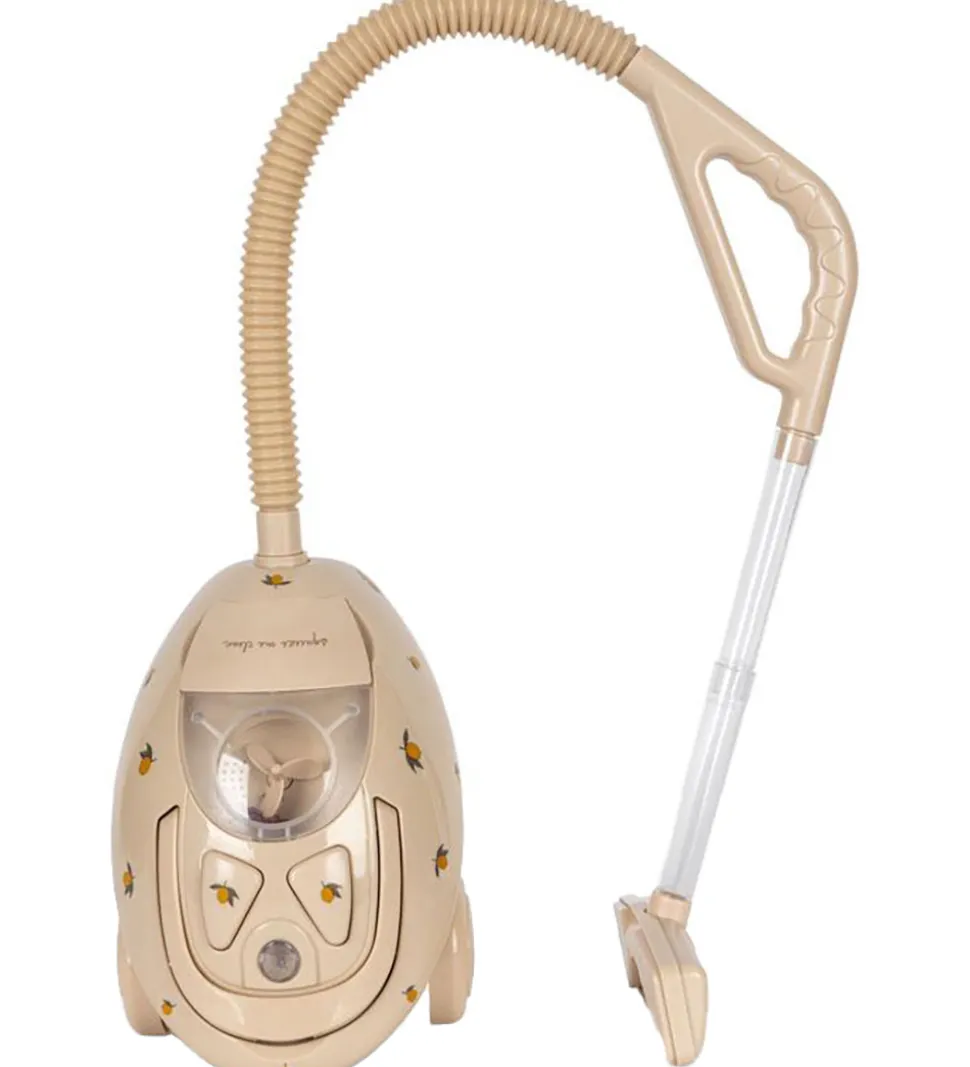 Sød Konges Sløjd støvsuger i beige med et alloverprint af gule citroner.