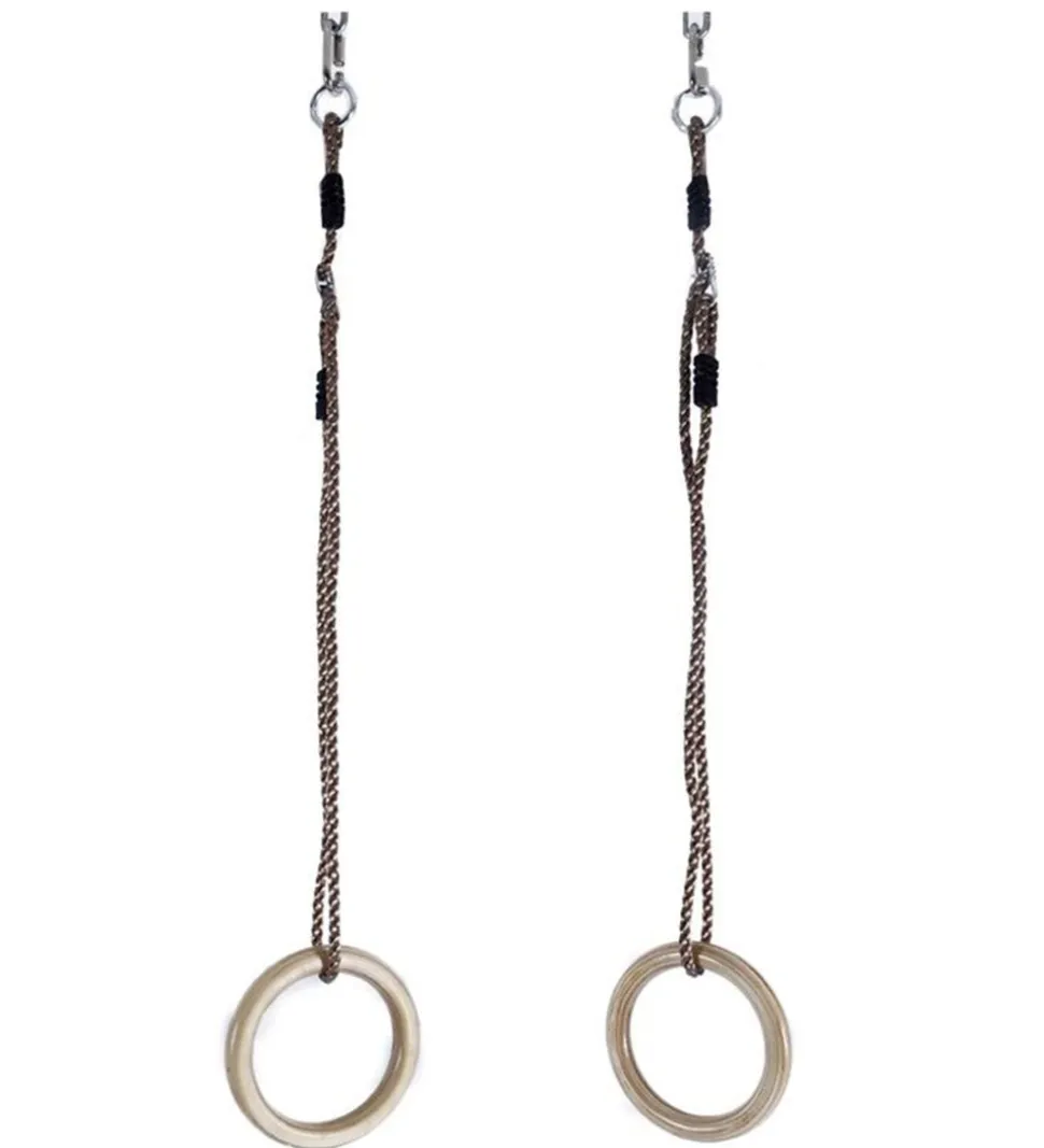 Sjov Krea gymnastikringe i naturligt træ med gråt reb.