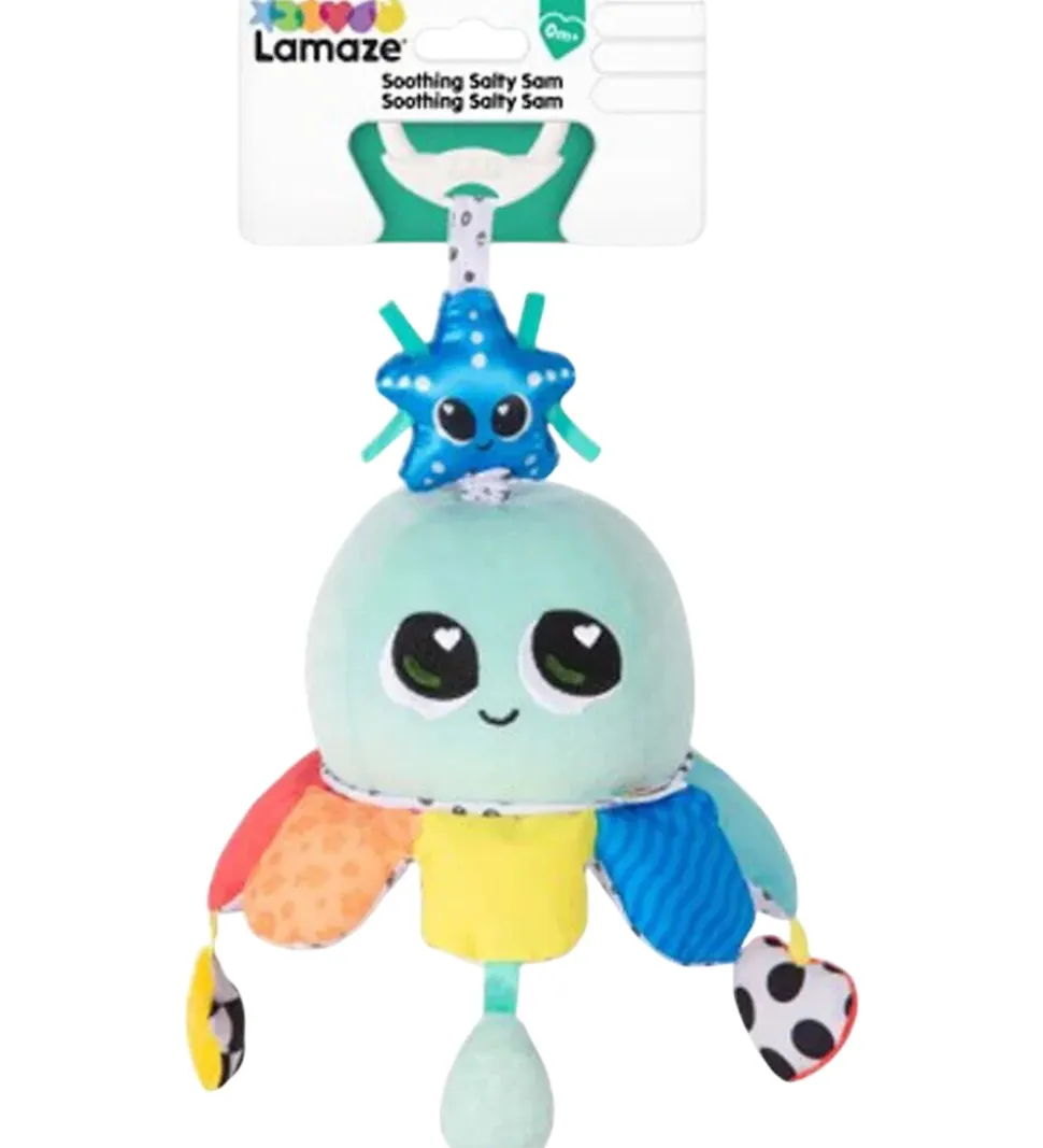 Sød Lamaze ophæng formet som en blæksprutte i forskellige flotte farver og mønstre.