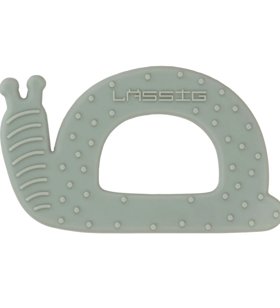Lässig bideringen er lavet af blødt silikone med mønstrede strukturer, som er gode for gummer og tænder, samtidig med at den er sjov at lege med. Bideringen rengøres med kogende vand eller i opvaskemaskinen.