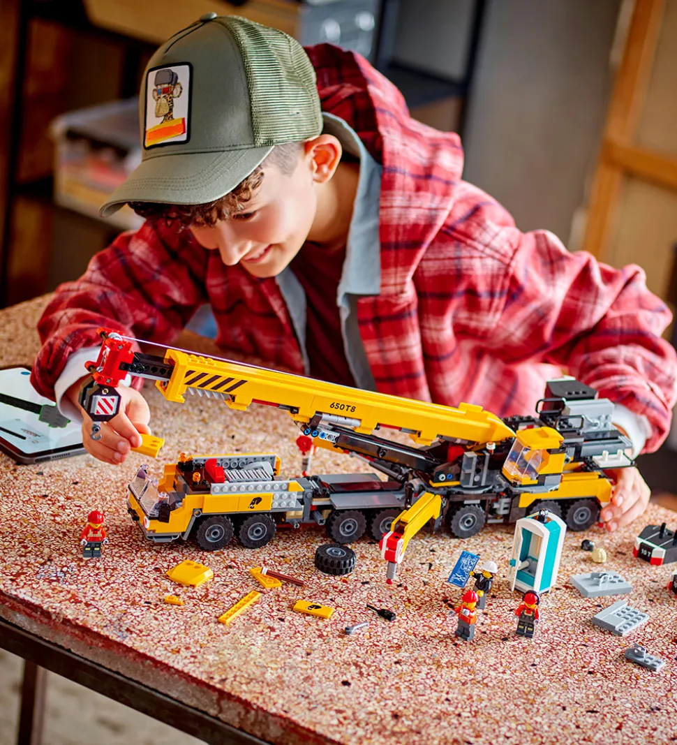 LEGO® City sættet er det perfekte legetøj til det kreative barn, der vil bygge og lege med sættet, som indeholder en detaljeret mobilkran, et legetøj af et transportabelt toilet og 4 minifigurer af bygningsarbejdere og masser af tilbehør. Mobilkranen kan folde støttebenene ud, dreje førerhuset, forlænge og dreje kranarmen 360 grader og kranspillet kan betjenes.