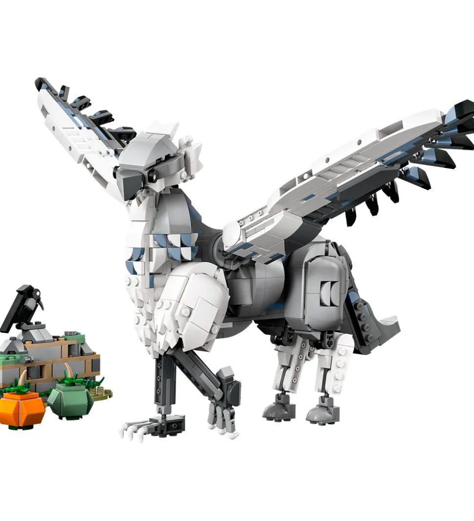 LEGO® Harry Potter sættet er det perfekte legetøj til det kreative barn, som vil bygge og lege med sættet, der indeholder en bevægelig model af hippogriffen Stormvind og en lille del af Hagrids have med en mur og 2 græskar, der kan bygges, samt en fuglefigur.