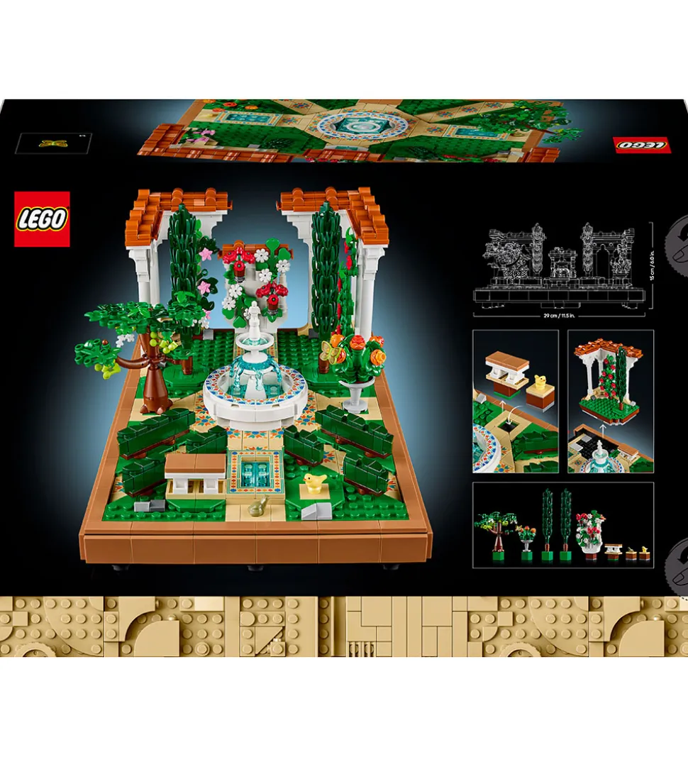 Storslået LEGO® Icons sæt med i alt 1302 klodser, som kan bruges til at bygge en detaljeret model af en fontænehave. Sættet er designet til voksne og byder på en afslappende byggeoplevelse med mange smukke elementer, der skaber en unik atmosfære.