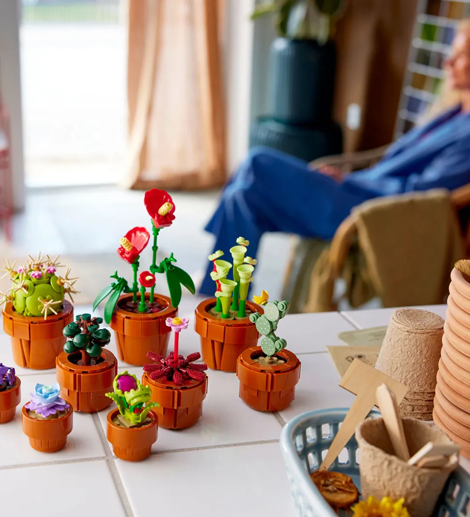 Smart LEGO® Icons sæt med i alt 758 klodser, som kan samles til ni forskellige små planter i brune krukker. Planterne er modeller af arter, der gror på tørre steder, samt tropiske og kødædende arter.