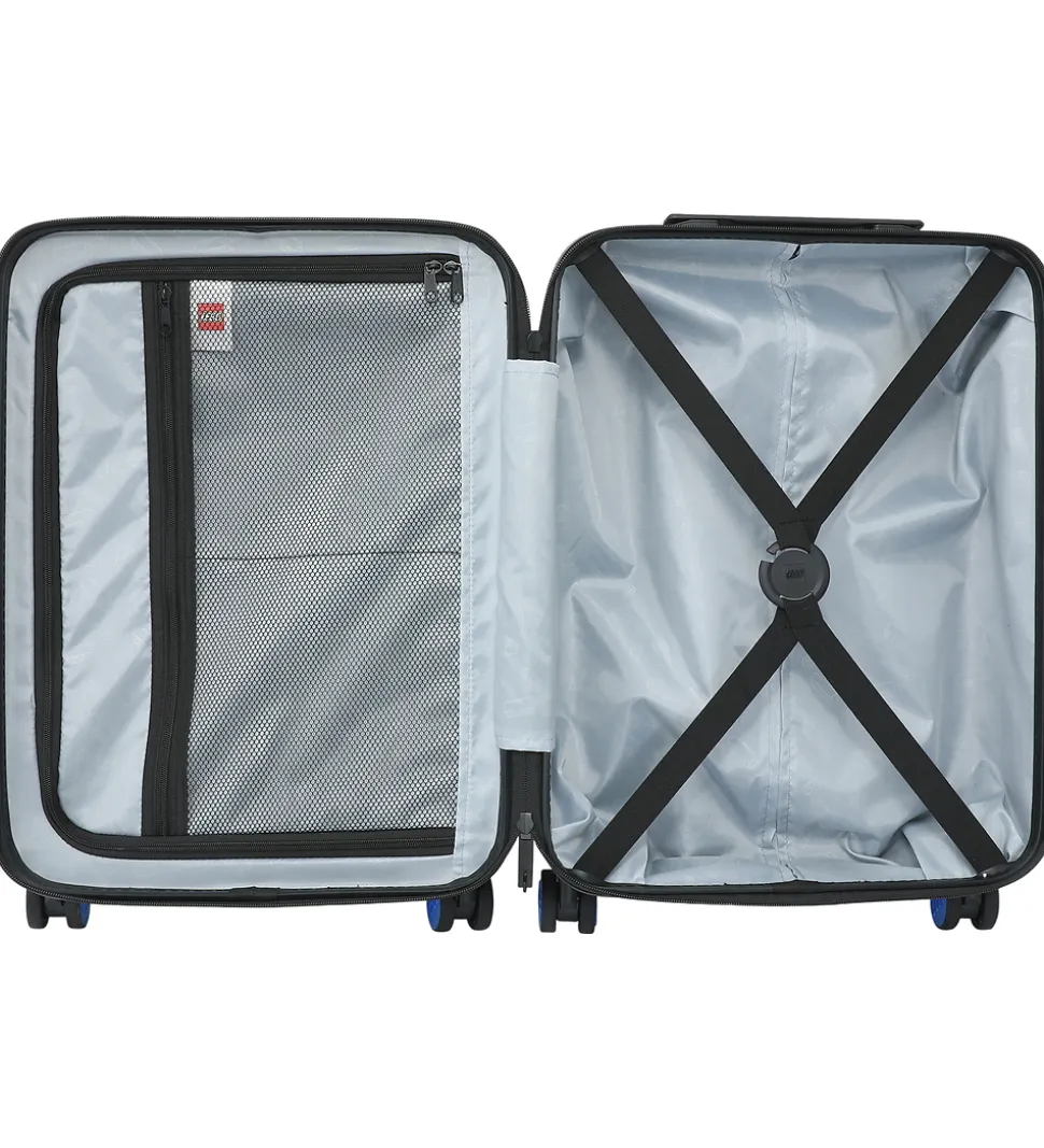 Kufferten har robuste hjul og et teleskophåndtag, der sikrer nem transport. Kufferten har ét stort rum, som åbnes med lynlås, og det er delt op med flere praktiske lommer, inkl. netlommer, og desuden en elastisk kompressionsstrop. Perfekt til rejsen.