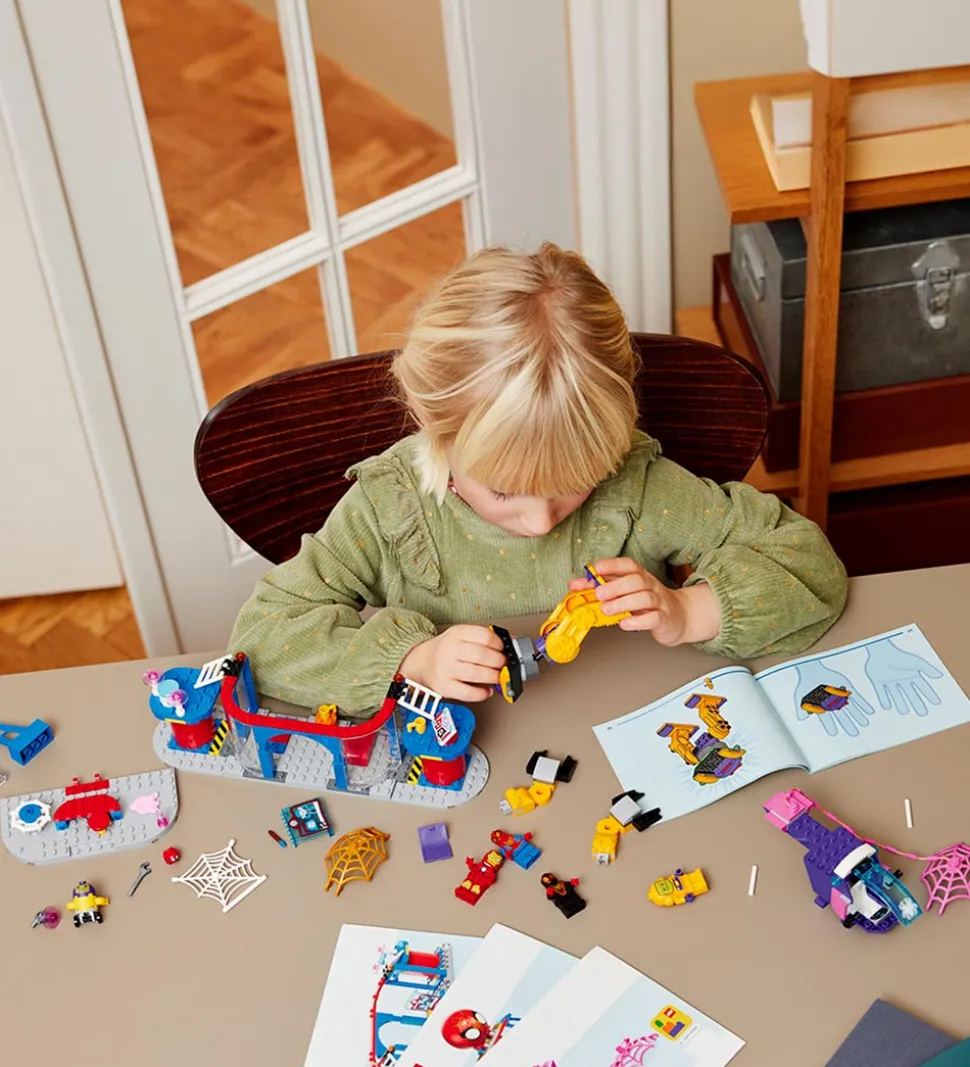 Fedt LEGO® Marvel Spider-Man sæt med i alt 193 klodser, som kan samles til Team Spideys netspinder-hovedkvarter.