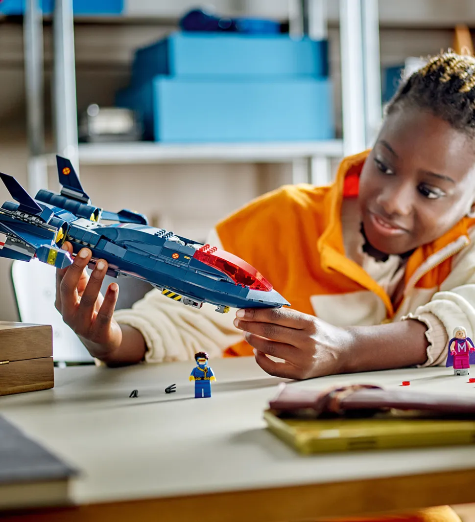 LEGO® Marvel sættet er det perfekte legetøj til det kreative barn, der vil bygge og lege med sættet, som indeholder jagerflyet med fungerende skydere og plads i cockpittet til de fire medfølgende minifigurer af de velkendte X-Men-figurer Wolverine, Cyclops, Rogue og Magneto.