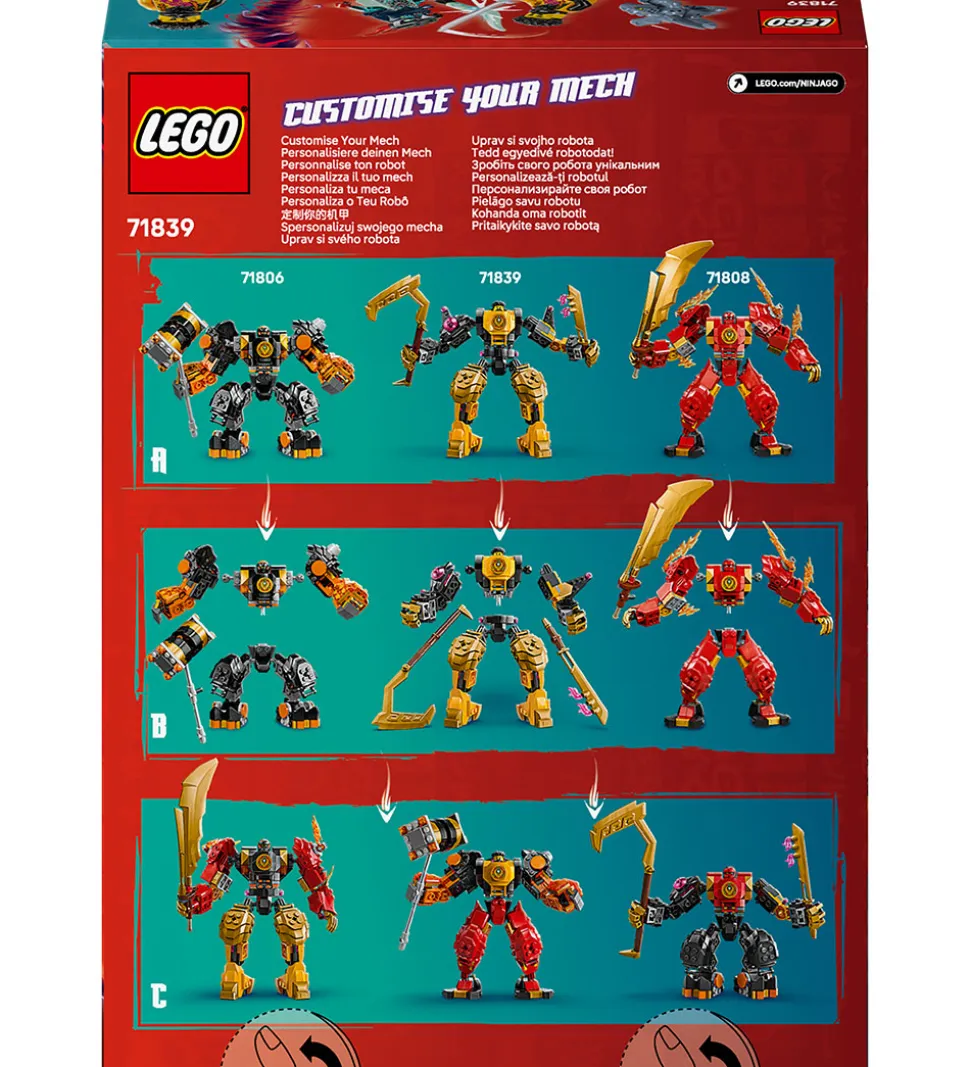Sjovt LEGO® Ninjago sæt med i alt 213 klodser, som kan samles til Arins Spinjitzu-kamprobot fra tv-serien NINJAGO: Dragerne vågner.