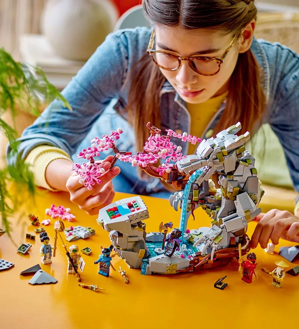 LEGO® Ninjago sættet er nemt at bygge ved af den medfølgende byggevejledning, men kan også findes i LEGO® Builder appen, hvor der kan zoomes og drejes i byggevejledningen.