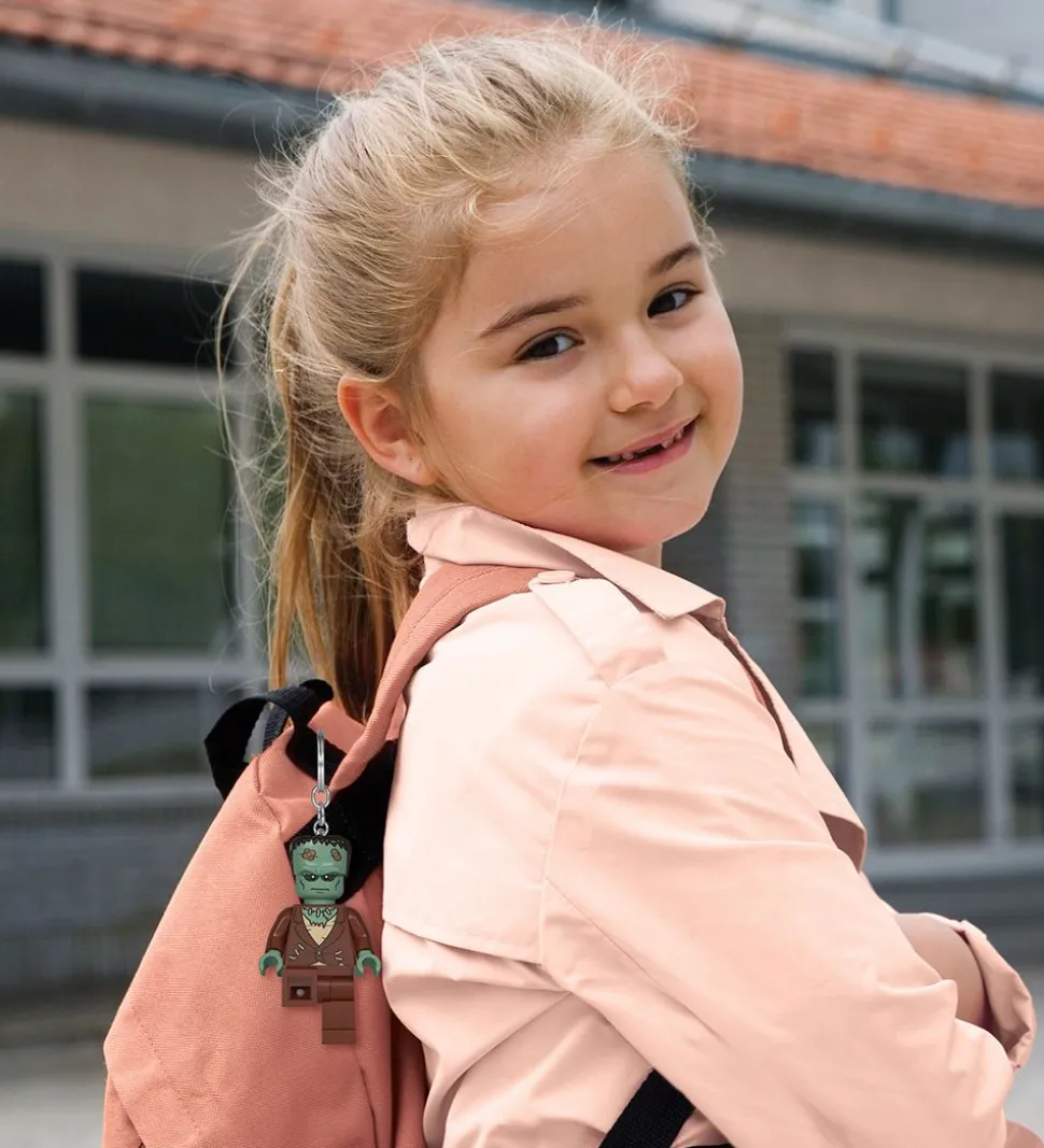 Uhyggelig LEGO® nøglering, som forestiller et monster.