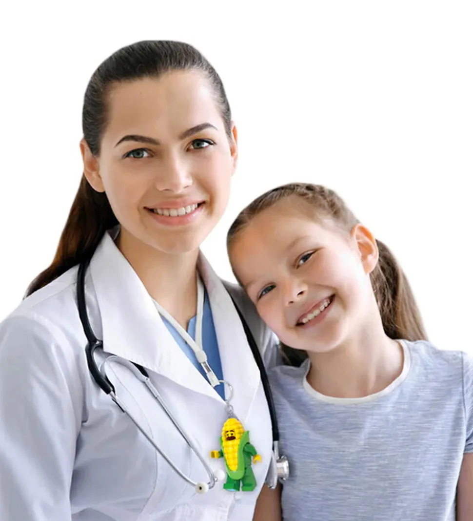 Sej LEGO® nøglering, som forestiller en majskolbefyr.