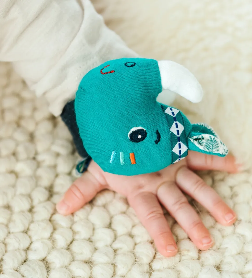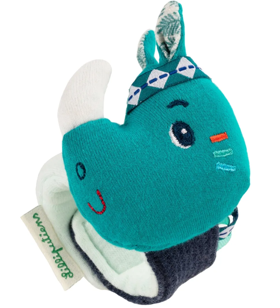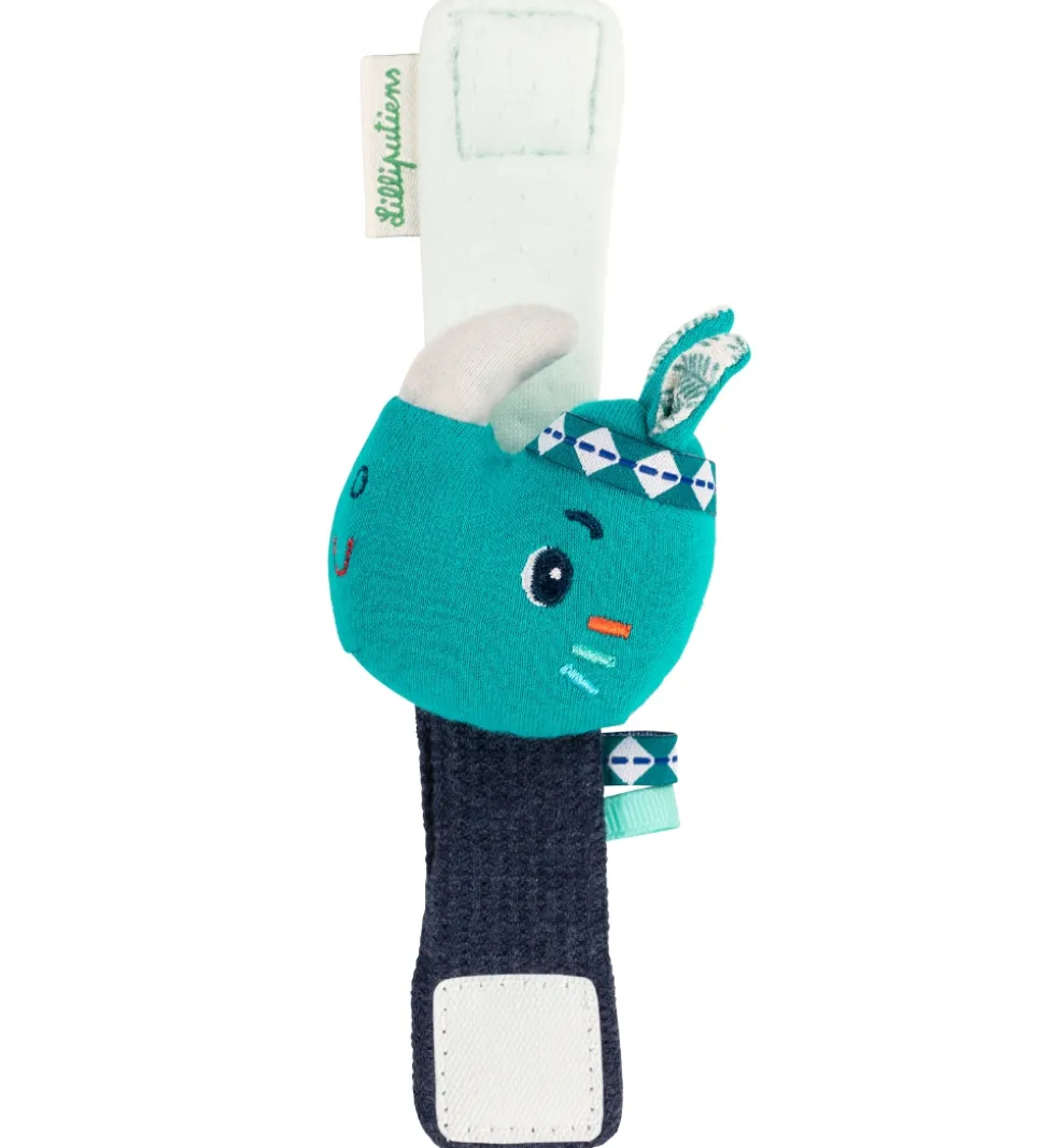 Lilliputiens ranglen laver en raslende lyd, når barnet bevæger den. Armbåndet har velcrolukning og i øvrigt knitrepapir indvendigt, så det også giver lyd fra sig.