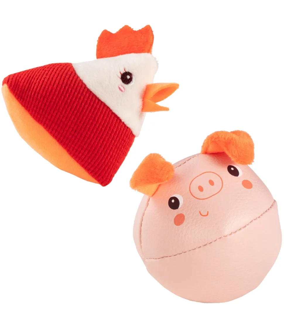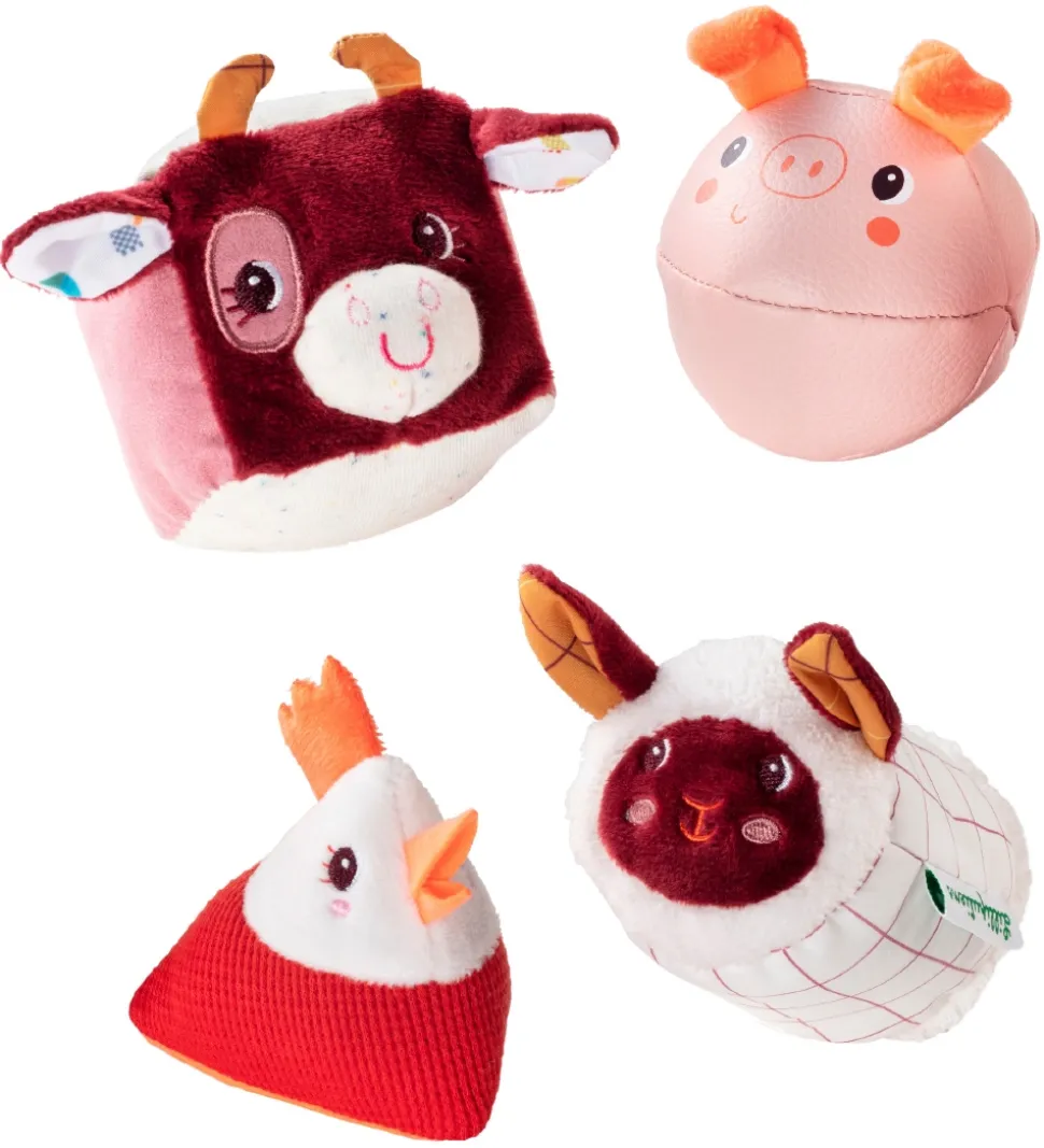 Skønne Lilliputiens rangler solgt i en 4-pak med et bondegårdstema. Ranglerne er i disse designs:
