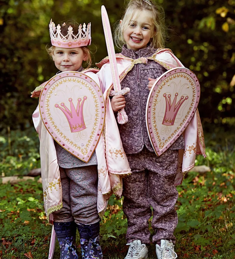 Fin Liontouch udklædning i form af en dronningekrone i rosa med gydne detaljer.