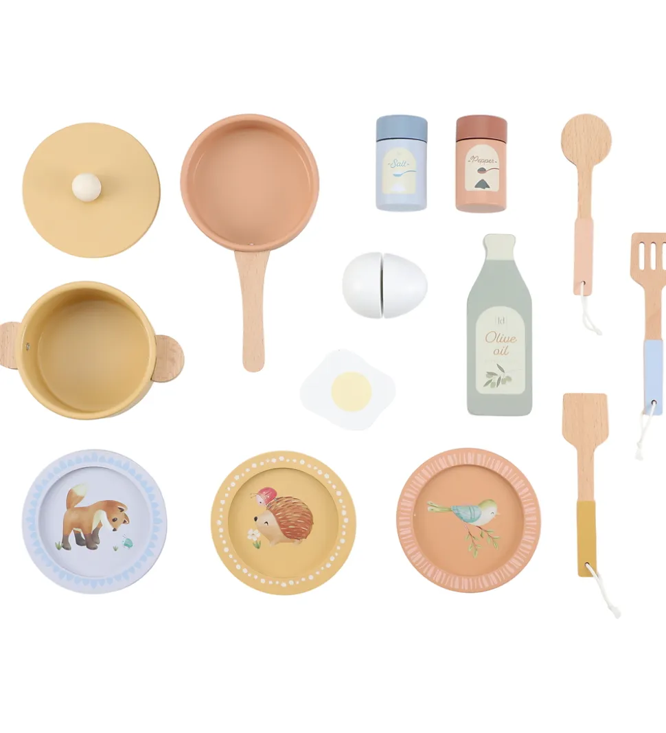 Little Dutch legekøkkenet indeholder følgende ting lavet af træ: