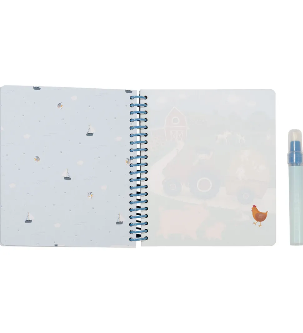 Little Dutch malebogen malebogen har spiralryg og kraftige sider med motiver, der skal males med den medfølgende, magiske pen, som fyldes med vand. Når vandet fra pennen rammer illustrationerne, toner farverne frem.