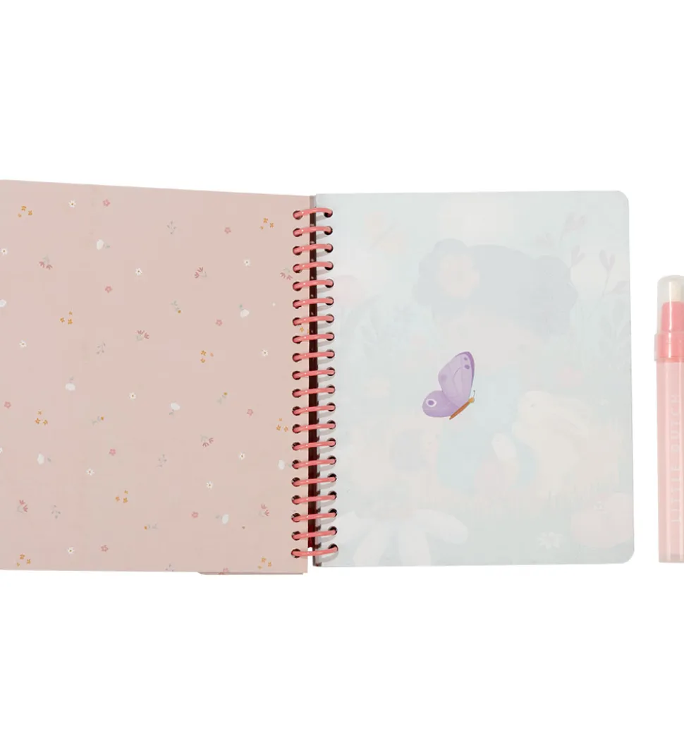 Little Dutch malebogen malebogen har spiralryg og kraftige sider med motiver, der skal males med den medfølgende, magiske pen, som fyldes med vand. Når vandet fra pennen rammer illustrationerne, toner farverne frem.